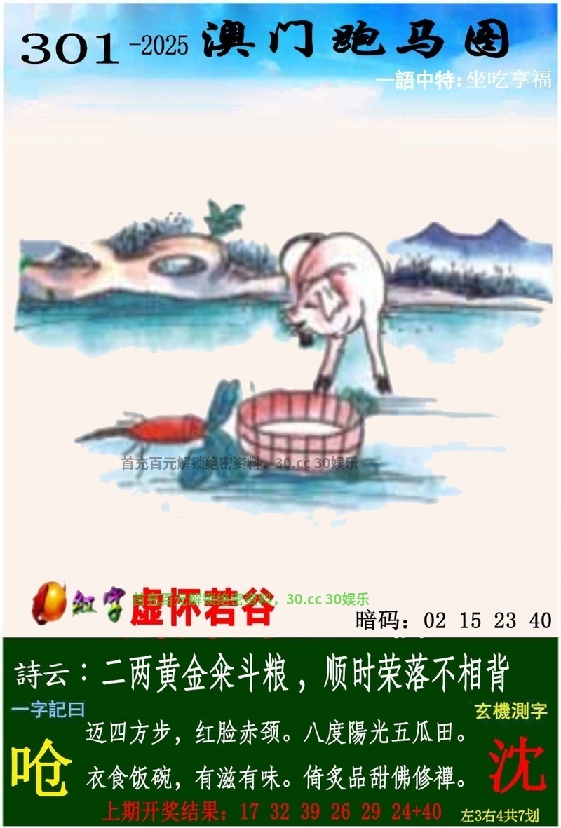 | 298期:⑤码 | 30.42.11.23.02 | 开:羊23中 |